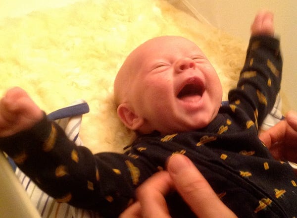 But for a baby it’s even worse than that. Not only have you arrived cold, wet and helpless in a world you know nothing about, in fact, you know nothing about anything. Your memory is blank. Your limbs are not yours to command. Your muscles are too feeble to even lift your head. You can’t control your most basic bodily functions. You don’t even have a language of your own to think in. Oh, and did I mention all those aliens about fifteen to twenty times your size? No wonder babies start screaming shortly after their arrival.